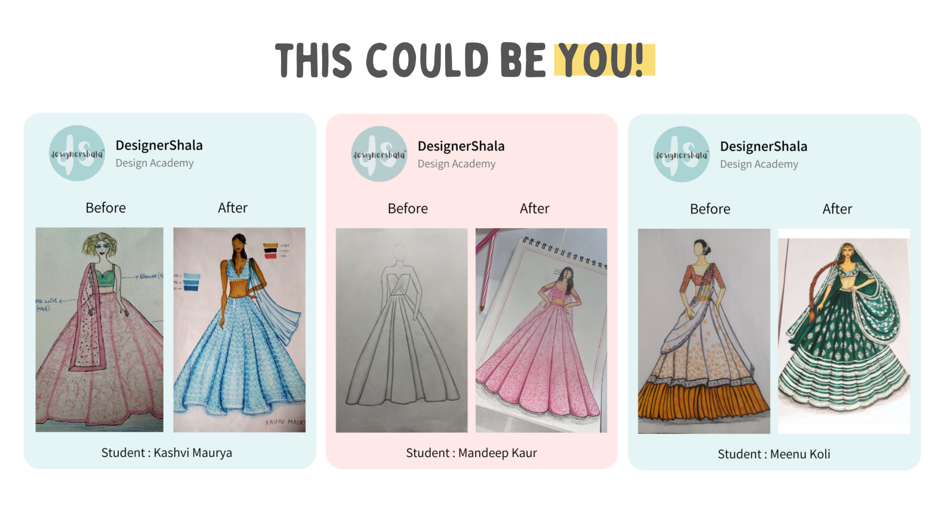 You’ll be able to follow the latest trends, draw your own sketches, and create exciting designs. You’ll have a collection of sketched designs for your own wardrobe or to be used for professional purposes